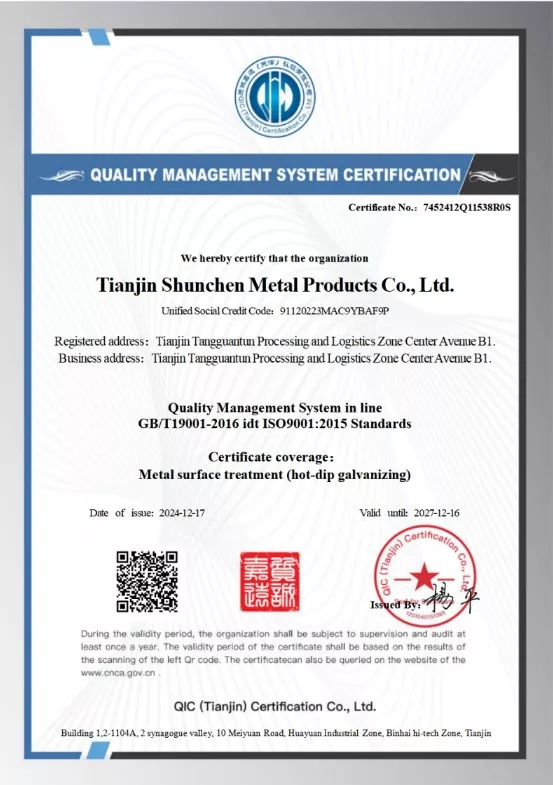 Shunchen의 고위 경영진은 용융 아연 도금 생산 분야에서 20년 이상의 경험과 기술을 보유하고 있습니다.