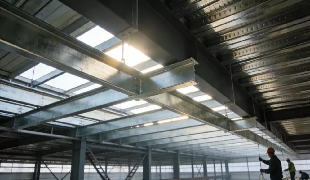 건축 자재 산업: 강철 구조물 작업장을 위한 도리 및 지붕 장선 설치 시나리오