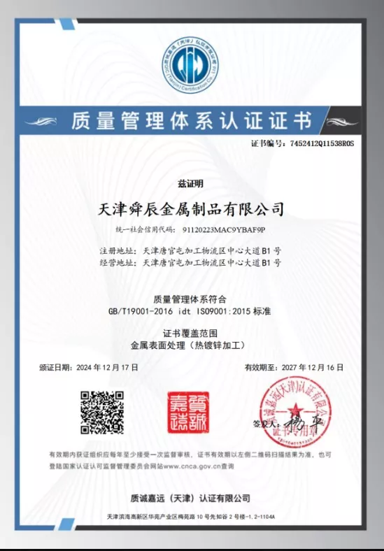 Q235B: 항복 강도 ≥ 235MPa, 인장 강도 375-500MPa, 연신율 ≥ 26%; 2. Q355B: 항복 강도 ≥ 355MPa, 인장 강도 470-630MPa, 연신율 ≥ 21%(용융 아연 도금 후에도 성능은 변하지 않습니다).