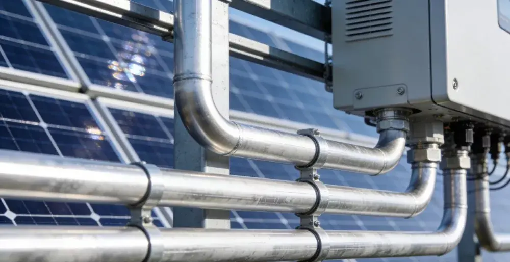 사례 연구: 대규모 중앙 집중식 태양광 발전소 프로젝트에서는 Φ48×3.0 용융 아연도금 강철 튜브를 사용하여 총 800톤이 넘는 태양광 모듈 브래킷을 제조했습니다. 야외, 바람이 많이 부는 모래 환경에 적합한 아연 층은 자외선 복사, 바람 및 모래 침식을 효과적으로 방지하여 브래킷의 수명과 광전지 모듈의 설치 안정성을 보장합니다.