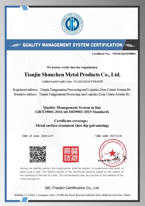 Tianjin Shuncheng Industrial의 아연 도금 강관은 일반 탄소 구조용 강철 또는 저합금 구조용 강철 원형 파이프를 기본 재료로 사용하여 용융 아연 도금 또는 전기 아연 도금 공정으로 처리하여 파이프의 내부 및 외부 표면에 균일하고 조밀한 아연 층을 형성합니다. 핵심 기능은 아연 층의 희생 양극 보호를 통해 모재에 장기적인 부식 방지 기능을 제공하는 동시에 압력 베어링, 운송 및 지지와 같은 원형 파이프의 기본 특성을 유지하는 것입니다. 유체 운송, 구조적 지지, 프레임 구성 및 기타 시나리오에 널리 사용될 수 있으며 다양한 실내 및 실외 환경에 적응할 수 있으며 특히 습하고 부식성이 높은 작업 조건에 적합합니다.